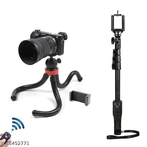 ADZOY 12 Inch Flexible Tripod Stand, Octopus Camera Tripod with 360 Degree Detachable Ball Head and Mobile Phone Holder with 1288 Bluetooth Selfie Stick 4 feet Tripod