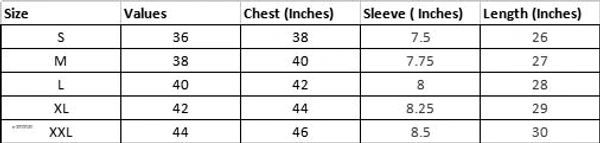S, M (Chest Size: 38 in, Length Size: 28 in)