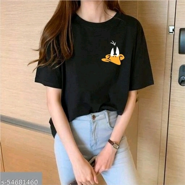 Beautiful Duck Print-Black T-Shirt For Women's