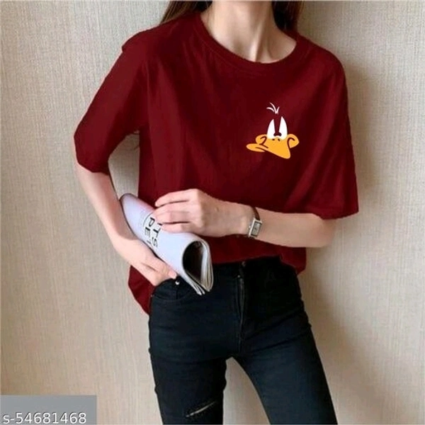 Beautiful Duck Print-Maroon T-Shirt For Women's Fabric: Cotton Sleeve Length: Short Sleeves Pattern: Solid Multipack: 1 Sizes: S, XL, L, M Country of Origin: India