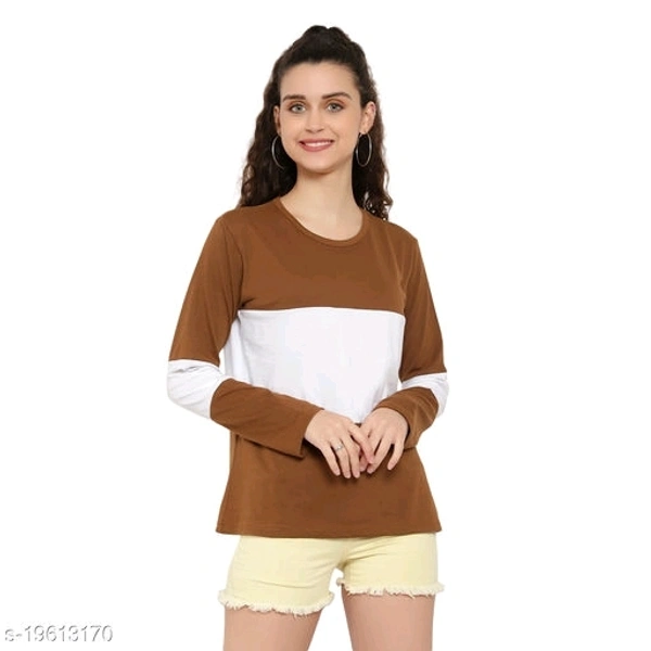 BI FASHION Women's colorblocked designer T-shirts Fabric: Cotton Sleeve Length: Long Sleeves Pattern: Colorblocked Multipack: 1 Sizes: S (Bust Size: 34 in) XL (Bust Size: 40 in) L (Bust Size: 38 in) M (Bust Size: 36 in) Country of Origin: India