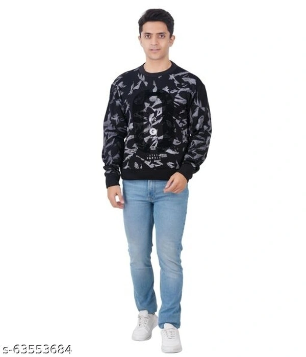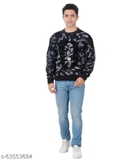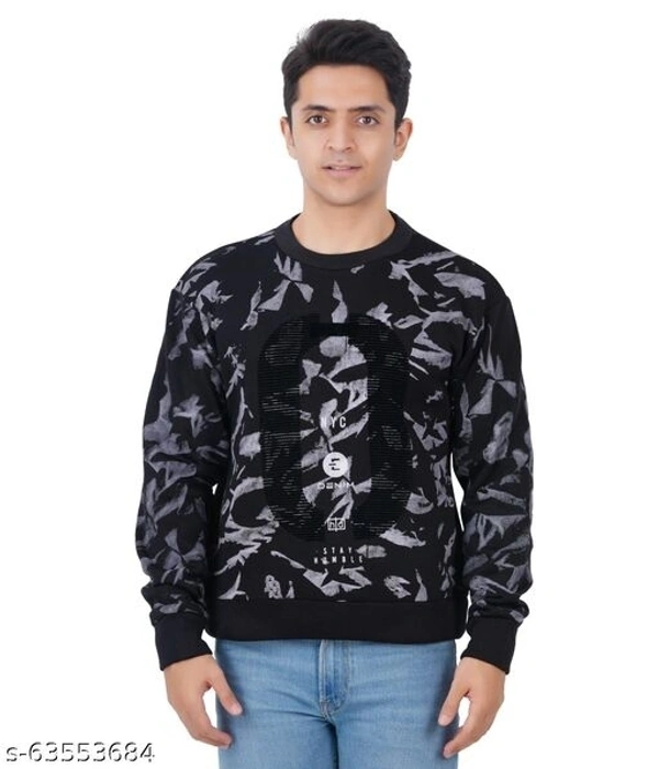 Black and blue crew neck camouflage mens full sleeve polyester fleece sweatshirt