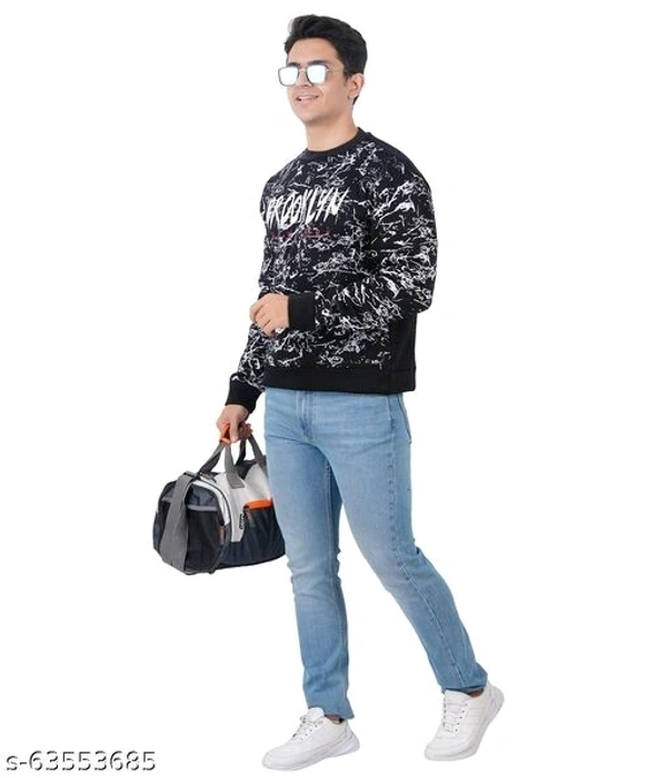 Black and white crew neck camouflage mens full sleeve polyester fleece sweatshirt