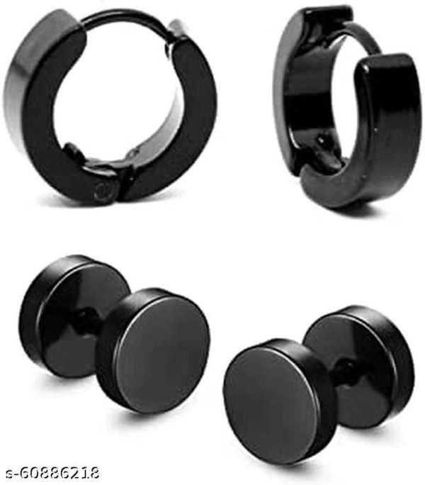 Black Bali And Black Dumbell Studs For Men / Boys