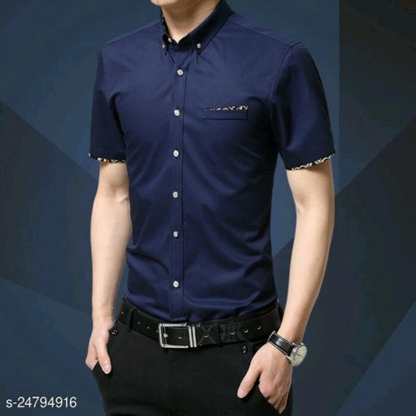 Blue Half Sleeve Cotton Shirt Fabric: Cotton Sleeve Length: Short Sleeves Pattern: Solid Multipack: 1 Sizes: XL (Chest Size: 40 in, Length Size: 29 in) L (Chest Size: 39 in, Length Size: 28 in) M (Chest Size: 38 in, Length Size: 27 in) XXL (Chest Size: 42 in, Length Size: 29.5 in) FABRIC: COTTON,SLEEVE: HALF SLEEVE,FIT: SLIM,POCKET : NO Country of Origin: India