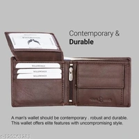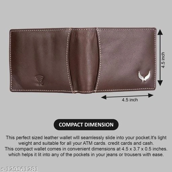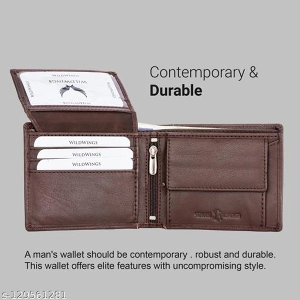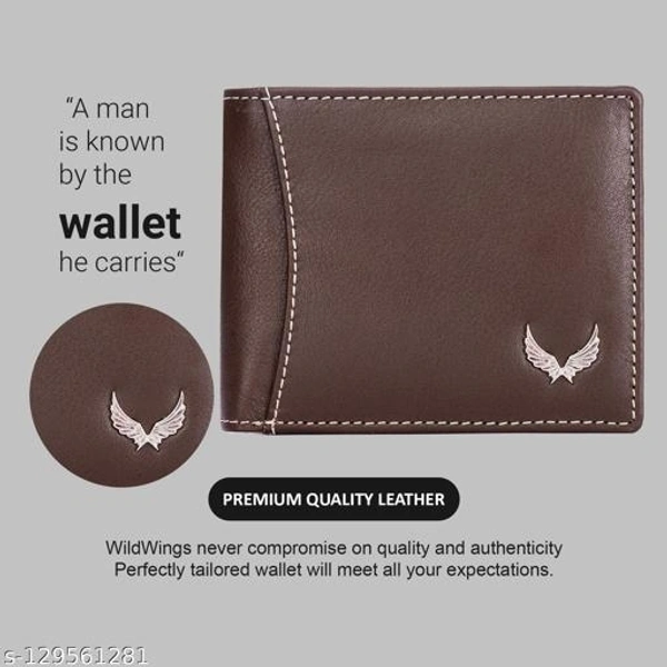 Material: Leather No. of Compartments: 2 Pattern: Solid Net Quantity (N): 1 Sizes: Free Size (Length Size: 11 cm, Width Size: 10 cm) Name : WILDWINGS (LABEL) Genuine Leather Men’s New Generation Stylish Wallet | Leather Wallet for Men | RFID Blocking Men’s Wallet This Leather Men’s Wallet from “WILDWINGS” is a great choice for daily use wallet for Men. This wallet is made with a high-quality classic genuine full grain leather. This wallet acts as the perfect accessory to complete your look and make you stand out at an affordable price. This wallet comes with multiple card slots and an ID window with 2 secret compartments and a zipper pocket plus a coin pocket and ideal for debit/ATM/credit cards.