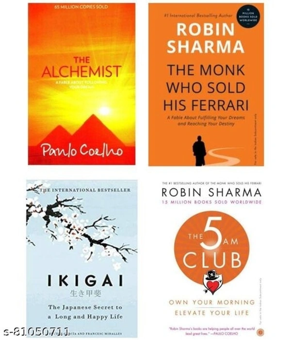 Name: Combo Book Fiction : The Monk Who Sold His Ferrari + IKIGAI + The 5 AM Club + The Alchemist | Set Of Four Books (Paperback, Robin Sharma, Garcia Hector, Paulo Coelho)