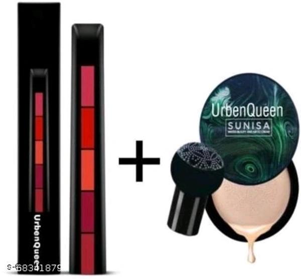 COMBO PACK OF Sunisa 3 in 1 Air Cushion Mushroom Head CC Cream Foundation WITH 5 in 1 lipstick ( 5 shades of lipstick) (pack of 2 items in the set)