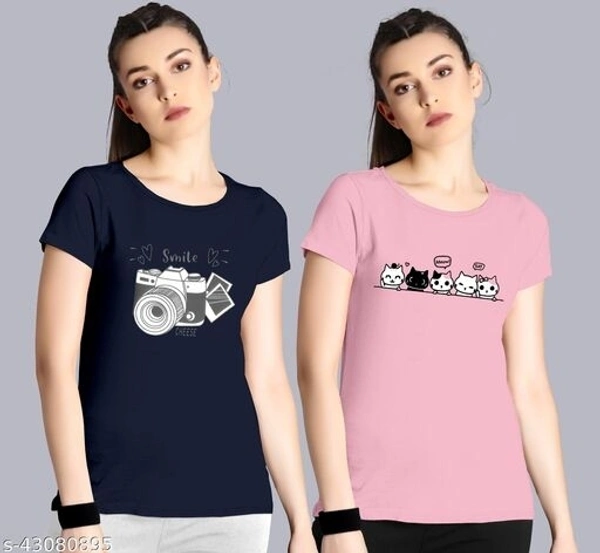 Combo Trendy Glamorous Women Tshirts Fabric: Cotton Sleeve Length: Short Sleeves Pattern: Printed Multipack: 2 Sizes: S (Bust Size: 34 in, Length Size: 24 in) XL (Bust Size: 40 in, Length Size: 25 in) L (Bust Size: 38 in, Length Size: 25 in) M (Bust Size: 36 in, Length Size: 24 in) Gorgeous and beautiful T-shirt made in Good quality. This T-shirt made from 100% Cotton Fabric which is Comfortable to Wear.This T-shirt comes In all Standard Sizes and also Available in Different Colours, so you can be Wear according to your choice and preference.The product is a versatile wear in functions, festivals, parties, wedding, ceremonies, events,everyday. Country of Origin: India