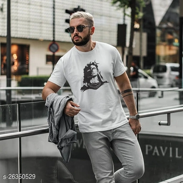 Comfy Sensational Men Tshirts Fabric: Polycotton Sleeve Length: Short Sleeves Pattern: Printed Multipack: 1 Sizes: S (Chest Size: 38 in, Length Size: 26 in) XL (Chest Size: 44 in, Length Size: 29 in) L (Chest Size: 42 in, Length Size: 28 in) M (Chest Size: 40 in, Length Size: 27 in) XXL (Chest Size: 48 in, Length Size: 32 in) Shiva Portrait Printed T-Shirt Shiva Portrait Printed T shirt is completely new in the market for fashionistas, if you are a fan of fashion and if you are a devotee of Shiva, then the printed T shirt with Shiva image will be perfect for you in jeans and capris. To go to any religious event, you can buy a Shiva Portrait T shirt for summer wear at a low price from our website. Country of Origin: India