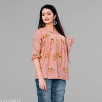 Comfy Women Tops & Tunics Fabric: Modal Sleeve Length: Long Sleeves Pattern: Printed Multipack: 1 Sizes: S (Bust Size: 34 in, Length Size: 27 in, Waist Size: 32 in, Hip Size: 28 in) XL (Bust Size: 40 in, Length Size: 27 in, Waist Size: 32 in, Hip Size: 34 in) L (Bust Size: 38 in, Length Size: 27 in, Waist Size: 32 in, Hip Size: 32 in) M (Bust Size: 36 in, Length Size: 27 in, Waist Size: 32 in, Hip Size: 30 in) About Product: Fitting type :-Regular Fit Neck Style: Collar Neck --Fabric Type:- Pure Georgette --Collar Style:-A-neck Style --Sleeve Type:- Raglan Sleeve --Style: Casual loose top for women --Feature: 3/4 sleeve top,casual top for women --Material: The fabric of our short sleeve basic Shirts is skin-friendly and well made. --Season: Wearing on Summer, Fall and Spring. --Match: Perfect with jeans, short and so on. --Ocassion: Suit for home, casual, travel, date, party, work or shopping. This Shirt is for effortless styling your way. Layered up or wear alone. wear it normally or tuck it into your jeans for stylish. Size Chart:Reference(Inches) S: Bust--36", Waist--32", Shoulder--14" M: Bust--38", Waist-34", Shoulder--15" L: Bust--40", Waist--36", Shoulder--16" XL: Bust--42", Waist--38", Shoulder--16" Country of Origin: India