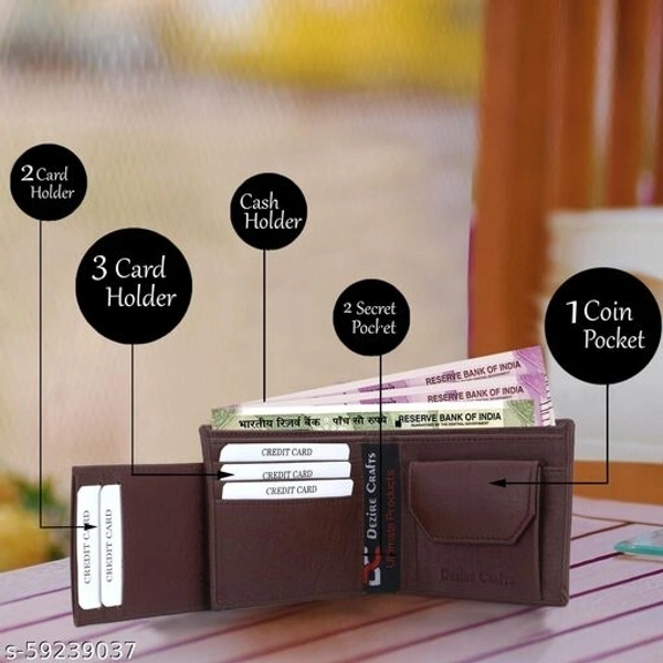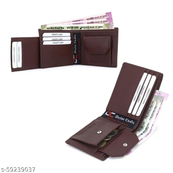 Dezire Crafts Men's Stylish Bi-Fold, Textured PU Leather, Latest Slim Wallets with Detachable Card Slot Case Name: Dezire Crafts Men's Stylish Bi-Fold, Textured PU Leather, Latest Slim Wallets with Detachable Card Slot Case Material: PU No. of Compartments: 2 Pattern: Textured Multipack: 1 Sizes: Free Size (Length Size: 12 cm, Width Size: 9 cm) This is a high-quality classic bifold wallet from Dezire Crafts made of Leather/Leather Hide.The multiple compartments help keep everything you need.Organized and secure while looking chic and sophisticated. Hand stitched, dyed and aged to last a lifetime.This Classic wallet will show your style every time you pull it out. It features multiple credit card slots and two compartments for cash. PU LEATHER: Precious Italian puleather with nice and smooth texture, really soft to touch.NEAT AND USEFUL COMPARTMENTS - there are 2 pockets for notes, 3 card slots and 2 hidden slots for credit / business cards.DESIGNER WALLET: It is a decent basic wallet with vintage style. =SLIM FEEL: Without bulky, it slides into your pocket effortlessly and fits comfortably.making it as an ideal gift. High Quality Stylish Genuine Men Leather Wallet.Type: BifoldWeight: 90 gram=Exterior Materials: Genuine Leather, Interior Details: 3 Card Slots,Coin Pocket & 2Currency Compartment