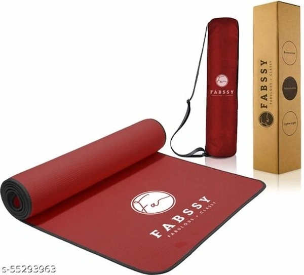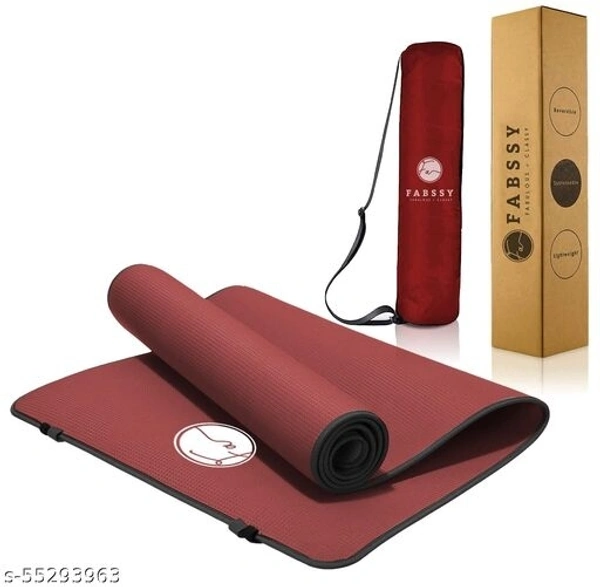 Fabssy 6mm Maroon Anti Skid Yoga Mat for Women with Carry Bag , Yoga Mat for Men with Carry Bag with Stitched Black Border Edges & Holding Grip Elastic.