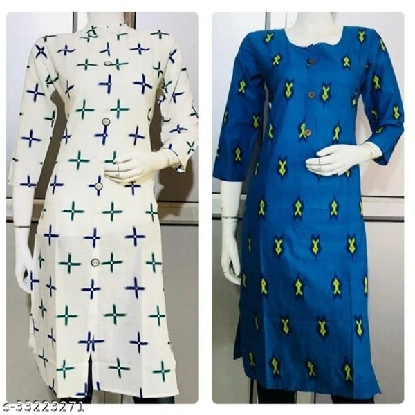 Fancy Kurtis Fabric: Cotton Sleeve Length: Three-Quarter Sleeves Pattern: Printed Combo of: Combo of 2 Sizes: XL (Bust Size: 44 in, Size Length: 42 in) L (Bust Size: 42 in, Size Length: 42 in) XXL (Bust Size: 46 in, Size Length: 42 in) M (Bust Size: 40 in, Size Length: 42 in) trending cotton straight combo kurtis Country of Origin: India