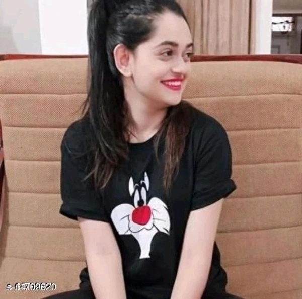 Fancy Women Cotton Tshirt Fabric: Cotton Sleeve Length: Short Sleeves Pattern: Printed Multipack: 1 Sizes: S (Bust Size: 34 in, Length Size: 26 in) M (Bust Size: 36 in, Length Size: 26 in) L (Bust Size: 38 in, Length Size: 26 in) XL (Bust Size: 40 in, Length Size: 26 in) Country of Origin: India