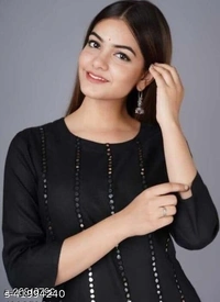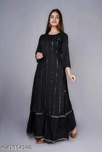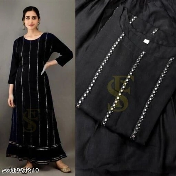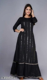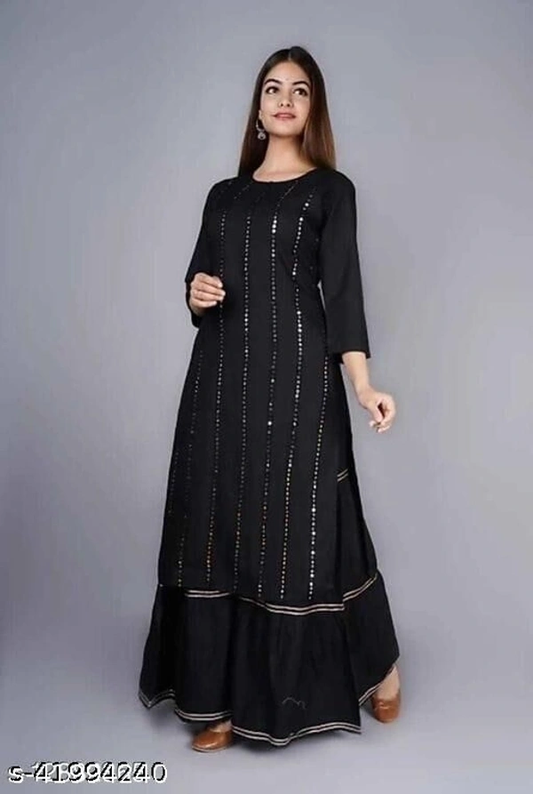 GCC Women's Solid Printed Rayon Zari Mirror Work A-Line Kurti With Sharara Set