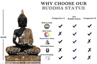 Global Grabbers Polyresin Sitting Buddha Idol Statue Showpiece For Home Living Room Bedroom Decor Decoration House Warming Gift Gifting Items-(SIL2_BLK-BS2)