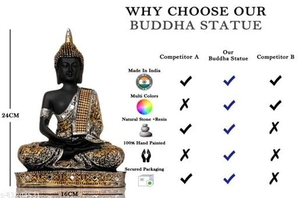 This Beautiful Meditating Sitting Buddha Idol Statue Showpiece From Global Grabbers On Meesho Is A Wonderful Gifting And Home Decor Item Which Is Ideal To Keep In Your Study Room Or Living Room, Pooja Room Or In A Showcase. This Showpiece Of Gautam Buddha Is Made From High Quality Polyresin And Is Handcrafted By Skilled Artisans Using Conventional Techniques. This Statue Is A Perfect Piece Of Art For Home Decoration, Office Decoration, Living Room Decoration, Bedroom Decoration, Kitchen Decoration, Hall Decoration, Dining Room Decoration, Dinning Table Decoration, Balcony Decoration, Garden Decoration. It Can Be A Perfect Gift And Can Be Gifted As A Gift For Brother, Gift For Sister, Gift For Marriage Couple, Gift For House Warming Ceremony, Gift For Mother, Gift For Mom, Gift For Sister, Gift For Brother, Gift For Girls, Gift for Boys, Gifting Items For Home Decoration And Much More It Can Be Used To Full Fill Almost Every Gifting And Home Décor Needs.