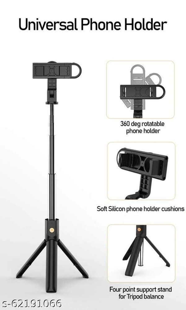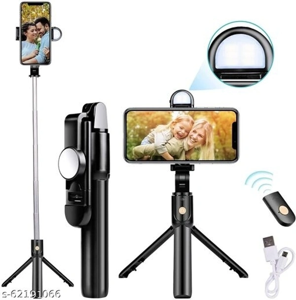 Homeschooling ideas Bluetooth Extendable Selfie Stick with Wireless Remote & 2 Level Fill Light for Making TIK Tok, Vlog Videos etc, and Tripod Stand Selfie Stick for for Mobile and All Smart Phones (Black)set of1 Mobile HoldersName: Homeschooling ideas Bluetooth Extendable Selfie Stick with Wireless Remote & 2 Level Fill Light for Making TIK Tok, Vlog Videos etc, and Tripod Stand Selfie Stick for for Mobile and All Smart Phones (Black)set of1 Mobile HoldersProduct Name: Homeschooling ideas Bluetooth Extendable Selfie Stick with Wireless Remote & 2 Level Fill Light for Making TIK Tok, Vlog Videos etc, and Tripod Stand Selfie Stick for for Mobile and All Smart Phones (Black)set of1 Mobile HoldersColor: BlackNet Quantity (N): 1?Selfie Stick Tripod with Bluetooth Remote & Rearview Mirror? selfie stick with built-in wireless remote control, it is easy to take selfie-photography or group photos. And rear view mirror will give perfect picture while using rear camera. And also Built in Fill light will help to take perfect selfie, Tik Tok, Vlogs videos.??Adjustable & Rotatable Phone Holder?360°rotatable phone holder + 270°rotation clamp with adjustable knob. You could rotate and select horizontal or vertical camera mode to achieve the best shooting angle.??HOW IS THE TRIPOD INTEGRATED AS ONE??Gently slide the WIRELESS REMOTE from stick .It takes 3 seconds to make the TRIPOD appear just simply unfold the bottom part of the selfie stick.Sizes: Free SizeCountry of Origin: China