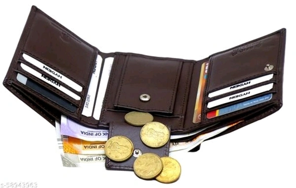 This is a brown trifold wallet from HYDEIN. The multiple compartments help keep everything you need organized and secure while looking chic and sophisticated. Hand stitched, dyed and aged to last a lifetime this classic wallet will show your style every time you pull it out. It features 9 credit card slots, two compartments for cash and one coin pocket. This wallet has been made out of Genuine leather.