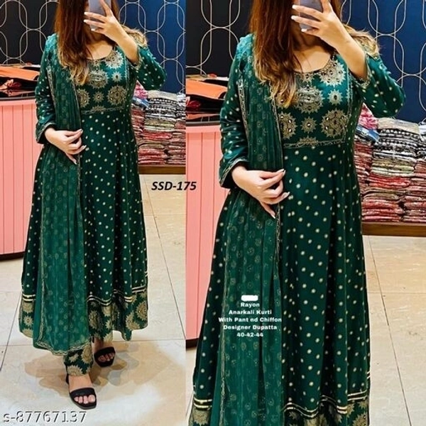 Name: "Karwachauth Special" Koteshwar Women's Anarkali Embroidered Kurta Pant Set With Dupatta
