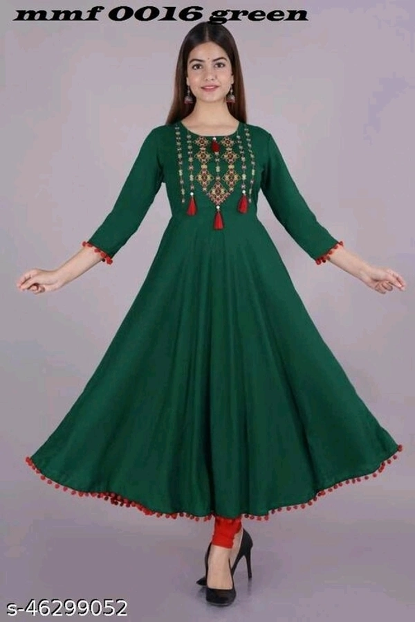 kurtis Fabric: RAYON Sleeve Length: Three-Quarter Sleeves Pattern: Embroidered Combo of: Single Sizes: XL (Bust Size: 42 in) L (Bust Size: 40 in) M (Bust Size: 38 in) XXL (Bust Size: 44 in) These are the latest indian gowns for women gowns from MMF (MOR MUKUT FASHION) kurti for women dresses perfect for fastival as well as formal wear and gowns for women party wear. We make gowns for ladies party wear designed to absolute perfection, this medium length designer rayon kurthi for women is soft against the skin that keeps you at ease whenever you wear it. This kurta women is plain yet most wearable kurta for women. These indian outfits for women immediately grabs the attention of the people around you and makes you look attractive and elegant. This indian kurti for women is light in weight and perfect for daily wear. These indian kurtis are the only wear which can easily be paired with jeans, trousers, leggings,skirts and even capris. Country of Origin: INDIA