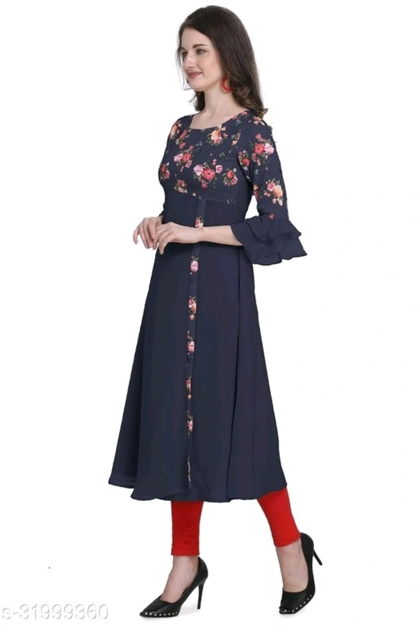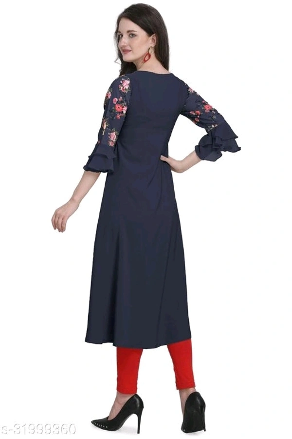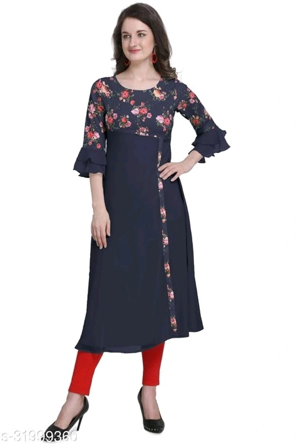Laayna Women's Crepe Printed A-Line Kurti Fabric: Crepe Sleeve Length: Three-Quarter Sleeves Pattern: Printed Combo of: Single Sizes: S (Bust Size: 36 in, Size Length: 46 in) XL (Bust Size: 42 in, Size Length: 46 in) 4XL (Bust Size: 50 in, Size Length: 46 in) XS (Bust Size: 34 in, Size Length: 46 in) L (Bust Size: 40 in, Size Length: 46 in) M (Bust Size: 38 in, Size Length: 46 in) XXL (Bust Size: 44 in, Size Length: 46 in) XXXL (Bust Size: 47 in, Size Length: 46 in) Country of Origin: India