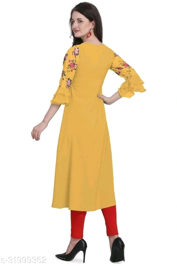 Laayna Women's Crepe Printed A-Line Kurti Fabric: Crepe Sleeve Length: Three-Quarter Sleeves Pattern: Printed Combo of: Single Sizes: S (Bust Size: 36 in, Size Length: 46 in) XL (Bust Size: 42 in, Size Length: 46 in) 4XL (Bust Size: 50 in, Size Length: 46 in) XS (Bust Size: 34 in, Size Length: 46 in) L (Bust Size: 40 in, Size Length: 46 in) M (Bust Size: 38 in, Size Length: 46 in) XXL (Bust Size: 44 in, Size Length: 46 in) XXXL (Bust Size: 47 in, Size Length: 46 in) Country of Origin: India