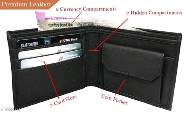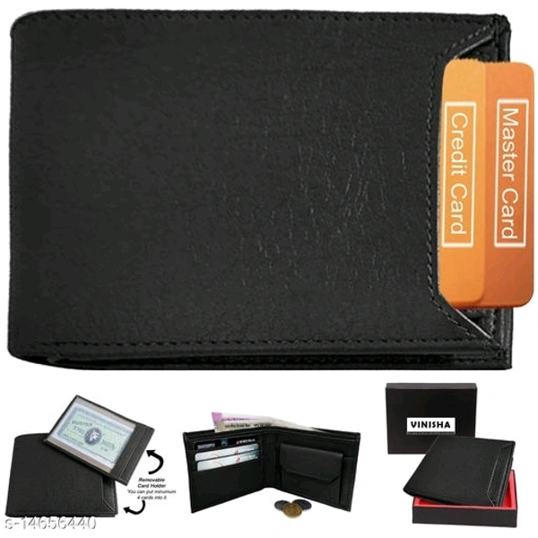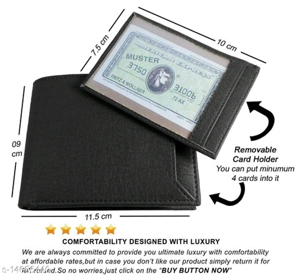 Leather Wallet For Men, PU Leather Gents Purse Removable Card Holder Black