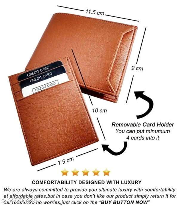 Leather Wallet For Men, PU Leather Gents Purse Removable Card Holder Tan