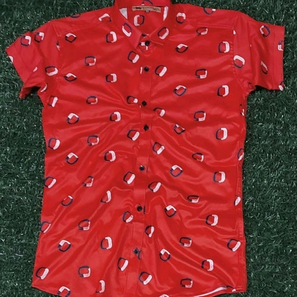 Lycra trend printed half sleeves Red shirt