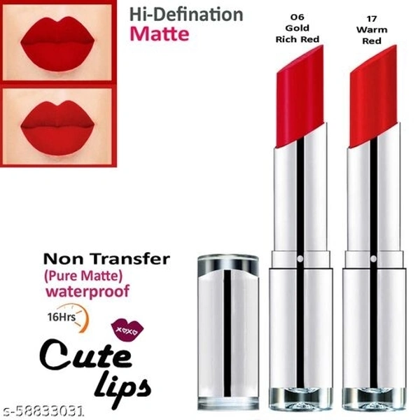 Makeup Mania B.Berry Cute Lips Non Transfer Matte Lipstick 2.4 gm each - 06 Gold Rich Red 17 Warm Red