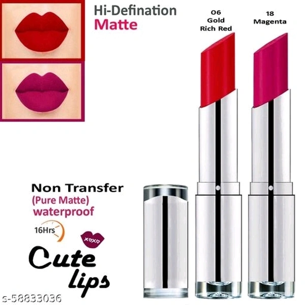 Makeup Mania B.Berry Cute Lips Non Transfer Matte Lipstick 2.4 gm each - 06 Gold Rich Red 18 Magenta