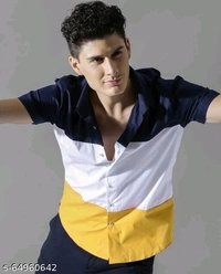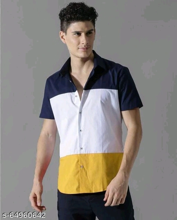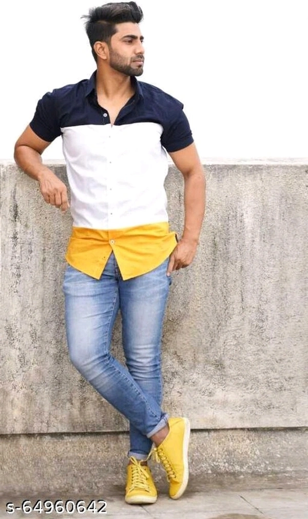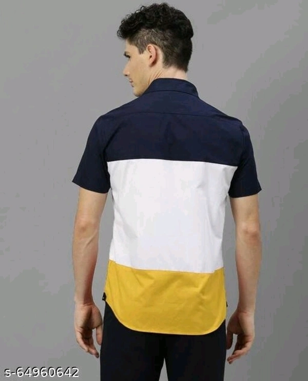 Men Slim Fit Color Block Spread Collar Casual Shirt