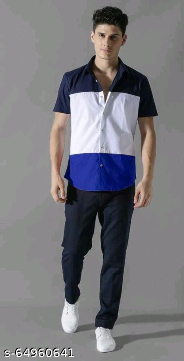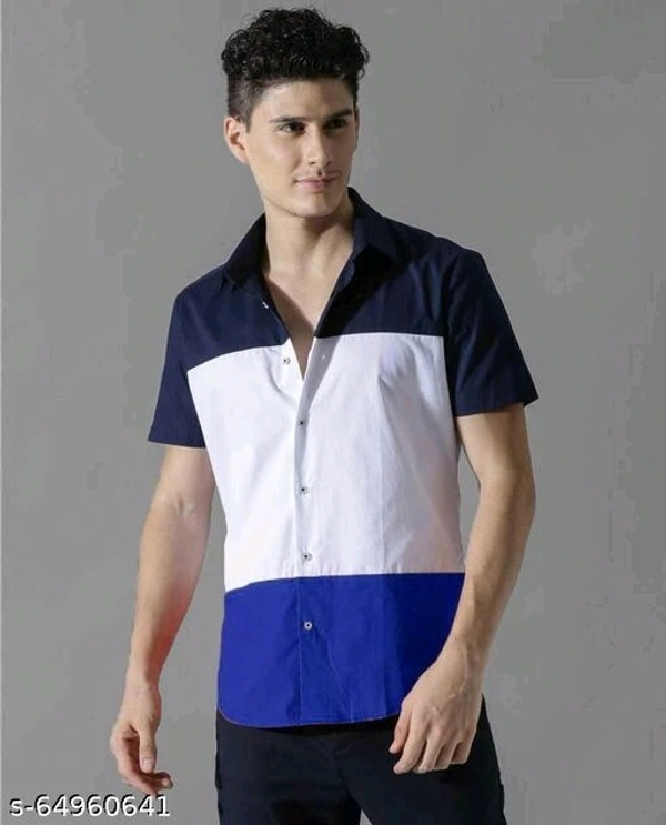 Men Slim Fit Color Block Spread Collar Casual Shirt Fabric: Cotton Sleeve Length: Short Sleeves Pattern: Colorblocked Multipack: 1 Sizes: S (Chest Size: 36 in, Length Size: 35 in) XL (Chest Size: 42 in, Length Size: 35 in) L (Chest Size: 40 in, Length Size: 35 in) M (Chest Size: 38 in, Length Size: 35 in) Good quality shirt for you.It gives you comfort Country of Origin: India
