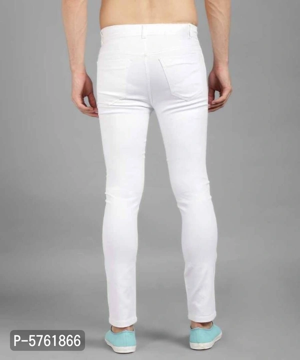 Men White Knee Cut Slim Fit Jeans