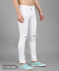 Men White Knee Cut Slim Fit Jeans