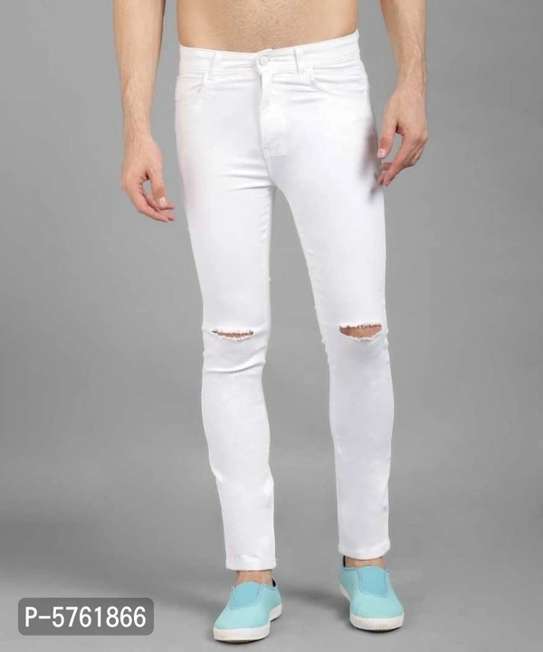Men White Knee Cut Slim Fit Jeans