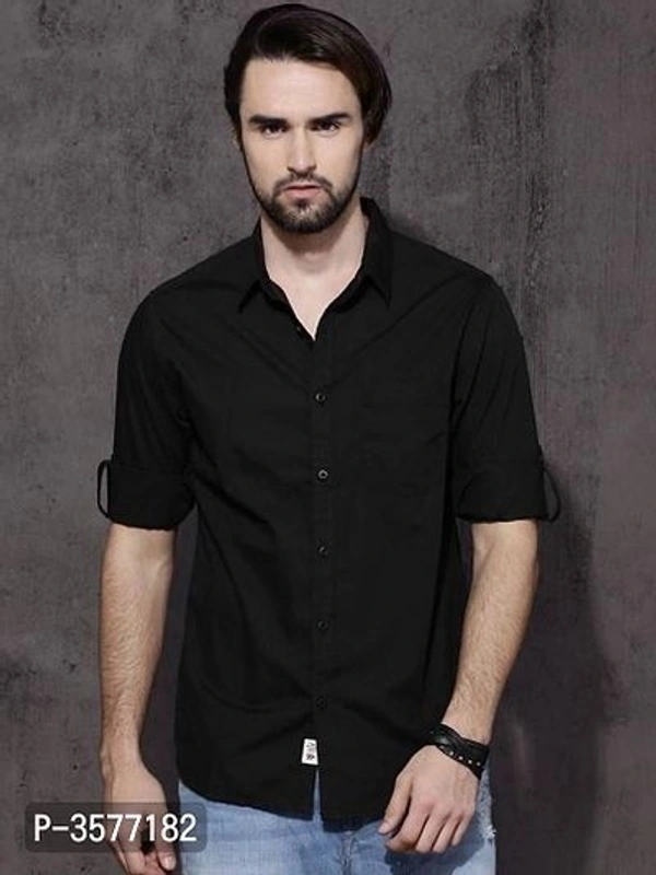 Men's Black Cotton Solid Long Sleeves Slim Fit Casual Shirt