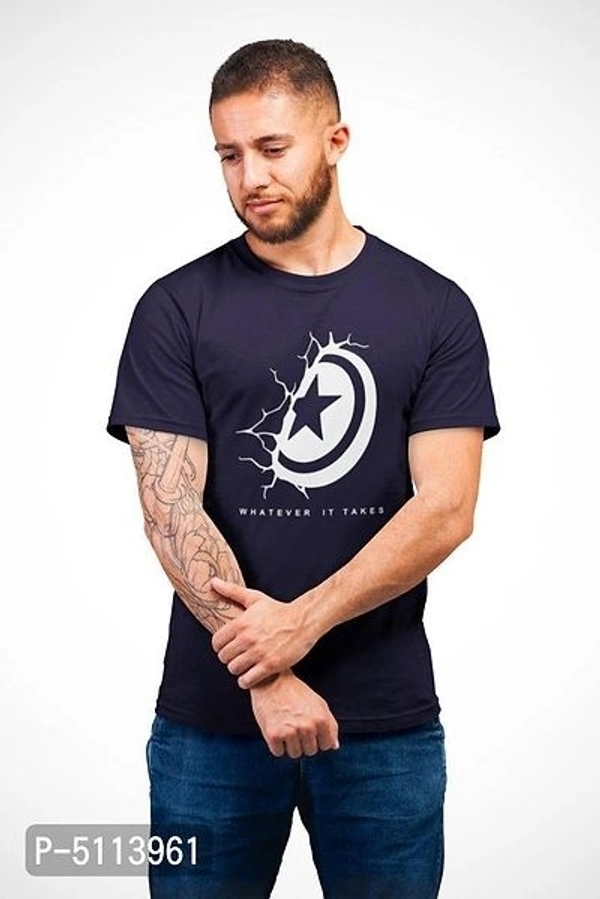 Men's Marvel Navy Blue Colour Half Round Neck T-Shirt