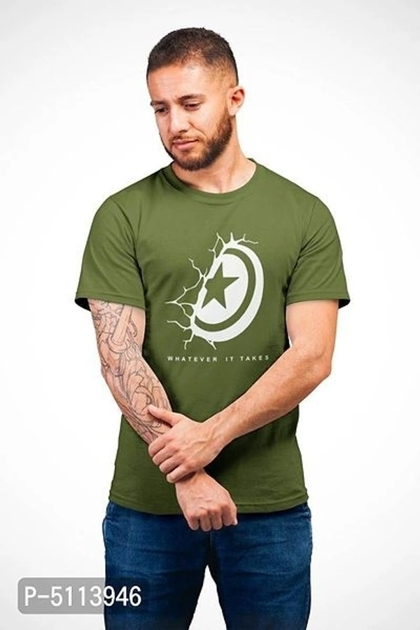 Men's Marvel Olive Green Colour Half Round Neck T-Shirt