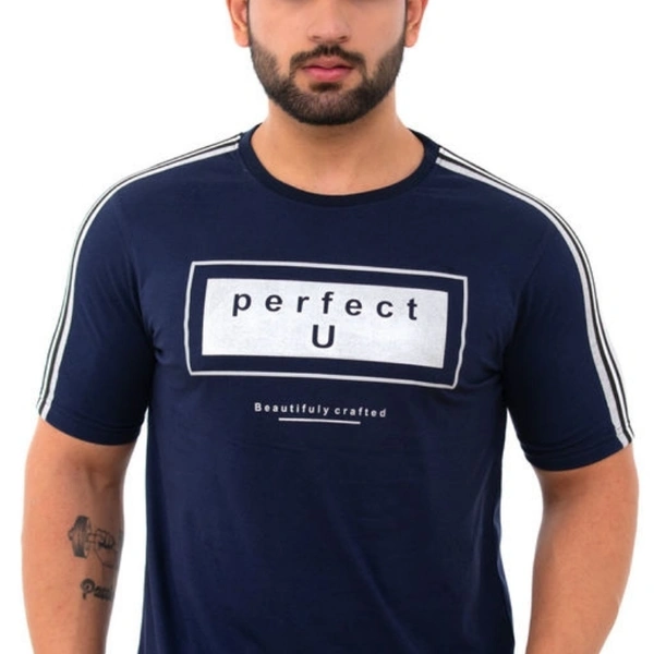 Men's Navy Blue Printed Cotton Short Sleeves Round Neck T-shirt Fabric: Cotton Sleeve Length: Short Sleeves Pattern: Printed Multipack: 1 Sizes: S (Chest Size: 37 in Length Size: 27 in) XL (Chest Size: 43 in Length Size: 29 in) L (Chest Size: 41 in Length Size: 28 in) M (Chest Size: 39 in Length Size: 28 in) XXL (Chest Size: 45 in Length Size: 30 in) Country of Origin: India