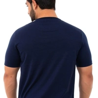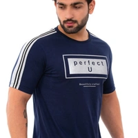Men's Navy Blue Printed Cotton Short Sleeves Round Neck T-shirt