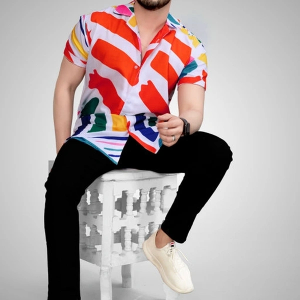 Men's Poly Cotton Half Sleeve Casual Printed Shirt