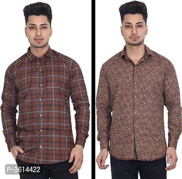 Men's Rust Red Check & Printed Reversible Long Sleeves Casual Shirt