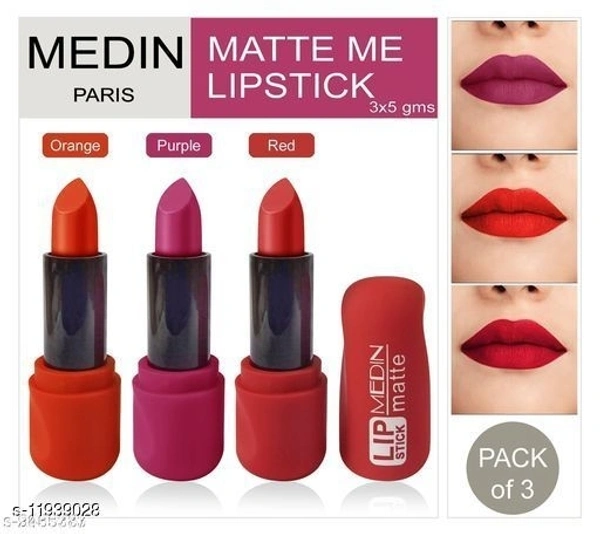 Navaratri Combo Of Pink Red Maroon Color Medin Paris Super Matte Lipstick with New Sades (Pack of 3)