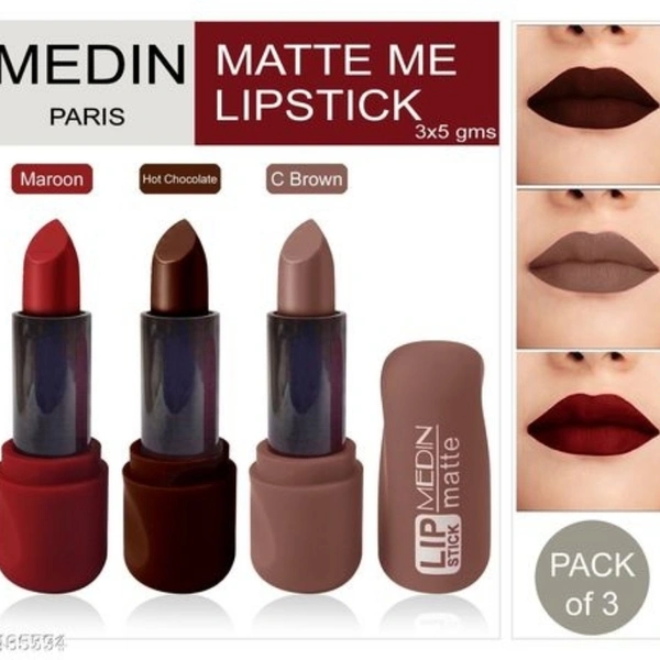 Navaratri Combo Of Pink Red Violet Color Medin Paris Super Matte Lipstick with New Sades (Pack of 3)