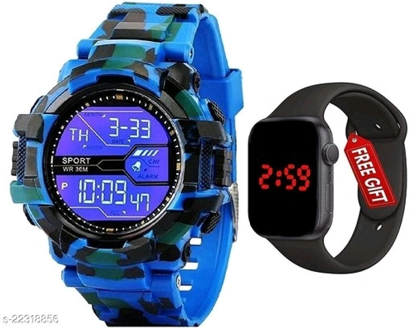 New Digital RTK703 Straight Blue Sports Watch Get Square Led Watch Free Watch For Boys