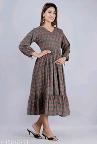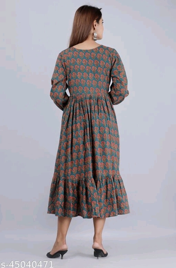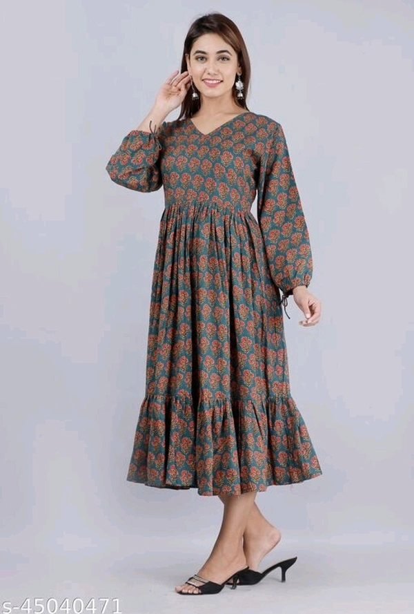 Nyasa Collection Women Printed Cotton 3/4 Sleeve V-Neck Flared Kurta
