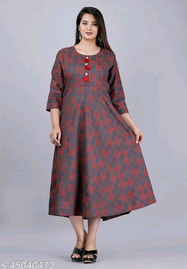 Nyasa Collection Women Printed Rayon 3/4 Sleeve Round Neck Flared Kurta